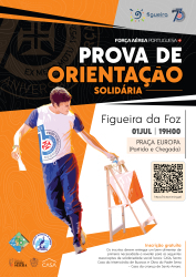 No âmbito das comemorações do 73.º Aniversário da Força Aérea Portuguesa convidamo-lo a participar na Prova de Orientação Solidária na Figueira da Foz, no dia 1 de julho de 2025 (terça-feira), pelas 19h00. A partida e chegada serão na Praça Europa, junto à Câmara Municipal, com o apoio da Associação Desportiva do Mondego - Ori Mondego.​