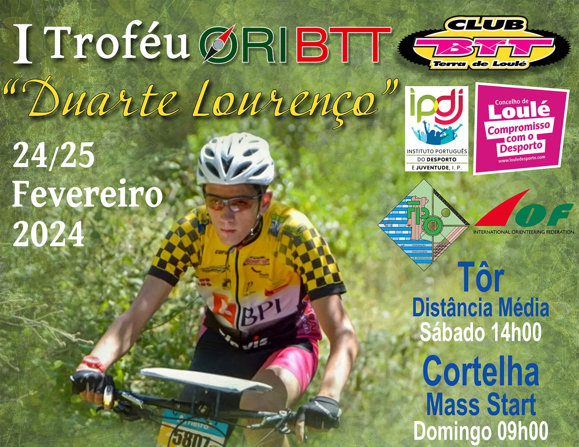 O Club BTT Terra de Loulé dá as boas vindas a todos os participantes no I Troféu ORI BTT “Duarte Lourenço”, a realizar nos dias 24 e 25 de fevereiro 2024, em Loulé, em parceria com a Câmara Municipal de Loulé, Junta de Freguesia de Salir, União de Freguesias Querença, Tôr e Benafim e Federação Portuguesa de Orientação.